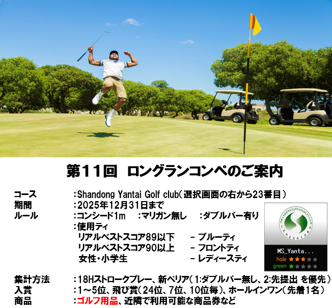 賞品も商品券だけでなく、ゴルフ用品も賞品としますので是非ご参加ください。