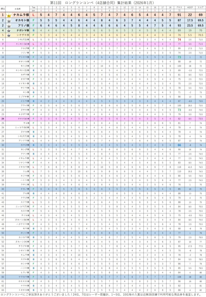 今回のコンペは、当店でプレー可能なコースの中では距離が長いコースで実施したため、
